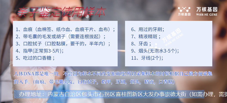 6.了解鑒定流程:在進(jìn)行鑒定前,向包頭石拐萬核親子鑒定服務(wù)中心了解鑒定的流程和方法,以便更好地理解鑒定結(jié)果。